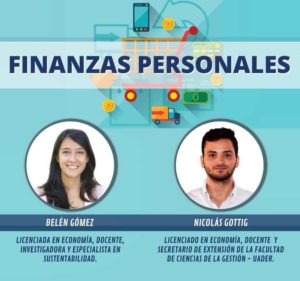 Los Licenciados en Economía Belén Gómez y Nicolás Gottig brindarán una capacitación virtual sobre “Finanzas Personales”, abordando preguntas tales como ¿Llevás registro de tus gastos? ¿Cómo decidís tus compras? ¿Ahorrás? La actividad se desarrollará el lunes 24 de agosto desde las 15 horas a través del canal de YouTube y la fan page de Facebook de la Municipalidad de Concepción del Uruguay. La actividad es organizada por el Consejo Municipal de la Juventud, dependiente de la Secretaría de Desarrollo Social y Educación, junto a la Facultad de Ciencias de la Gestión de UADER.