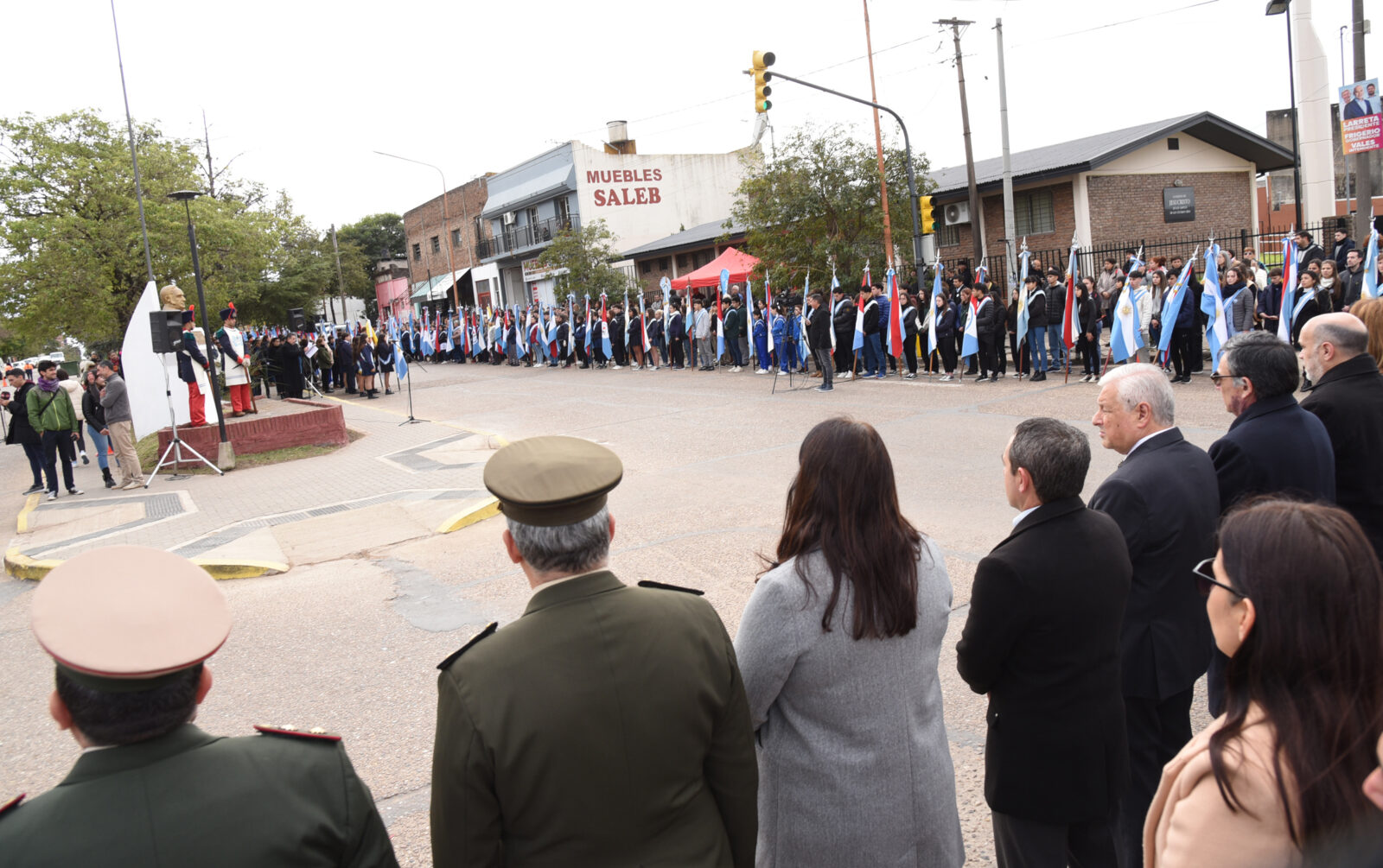 El intendente, José Lauritto, encabezará la ceremonia, durante la cual se referirá a la fecha el historiador Gustavo Sirota. Participará la Banda de Música del Batallón de Ingenieros Blindados 2, en tanto Lara Marcó, Julieta Darquier y Facundo Torresán ofrecerán un espectáculo de música folklórica, que contará con acompañamiento de parejas de la escuela de danzas “Suyai”.