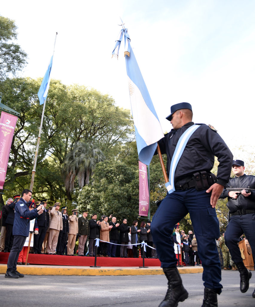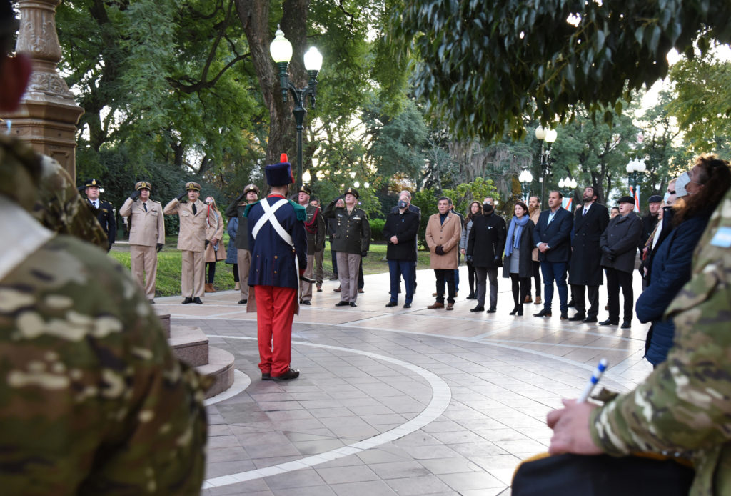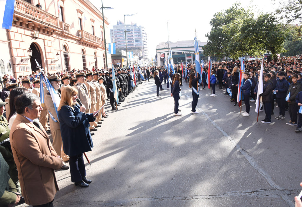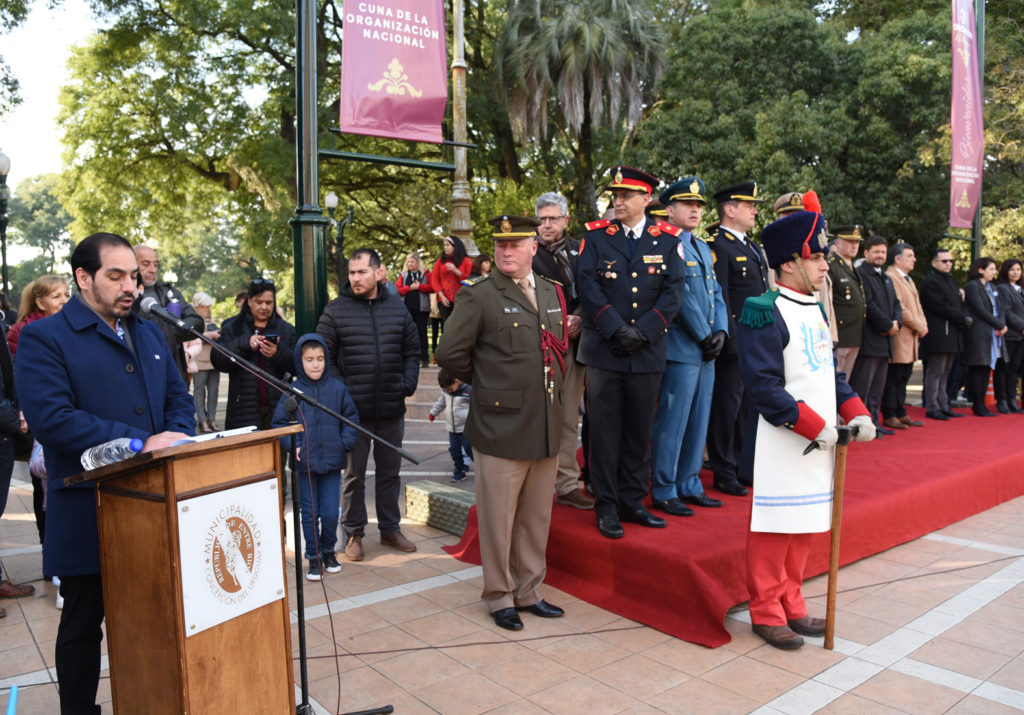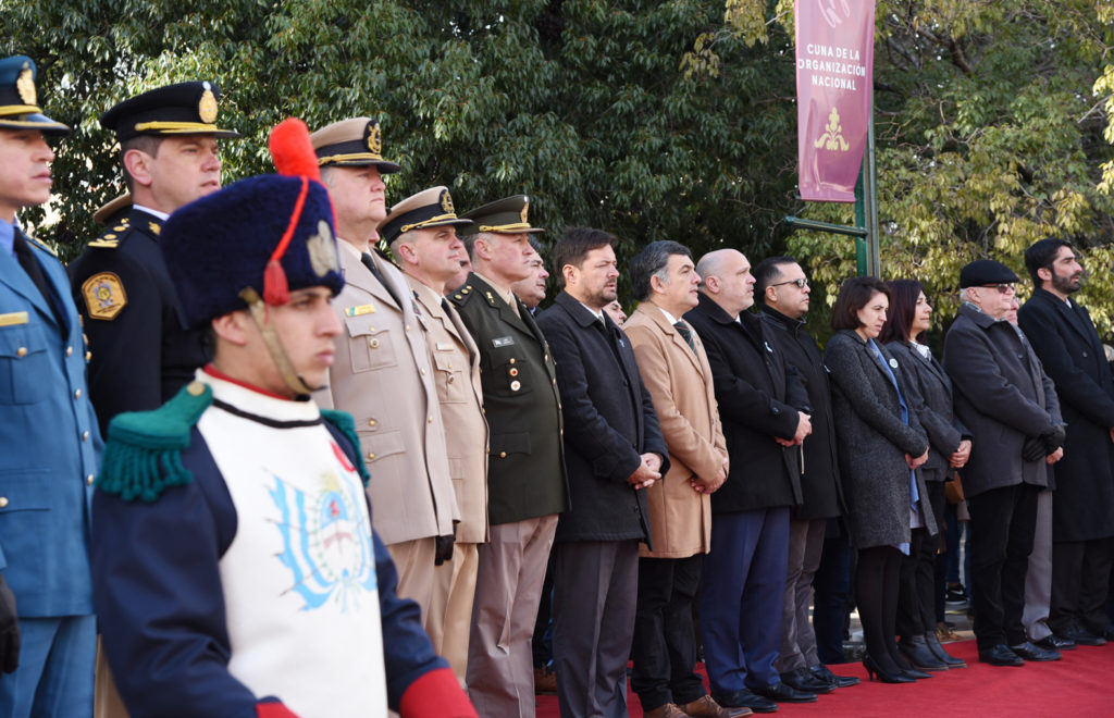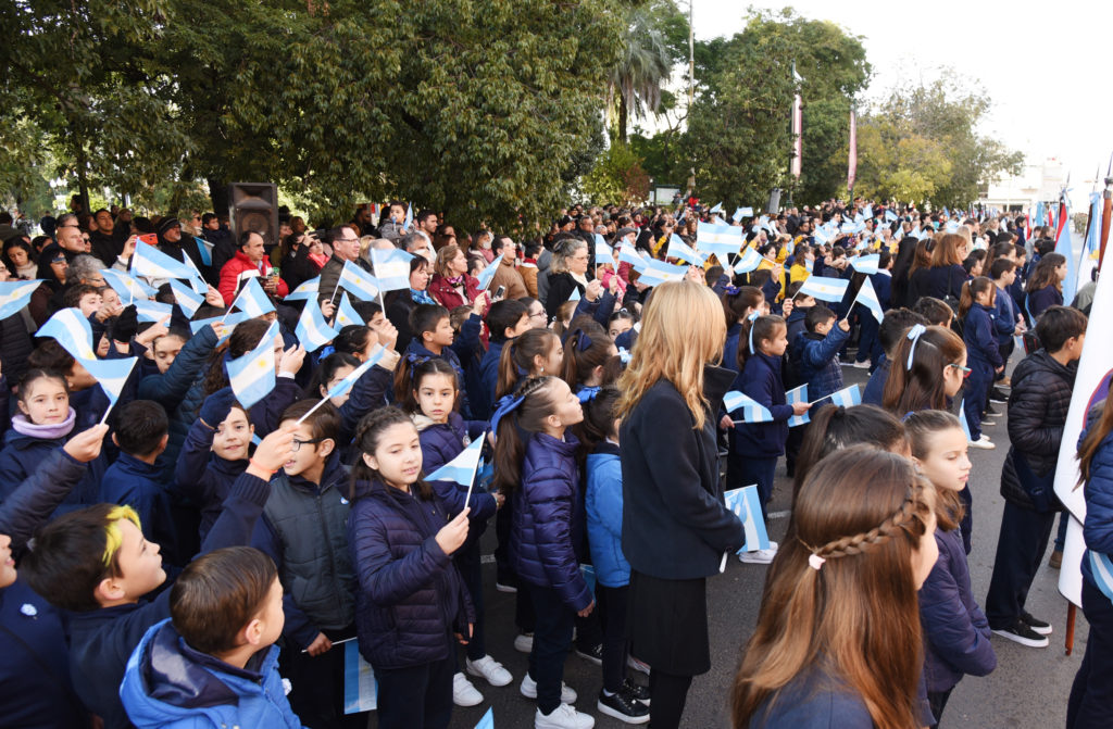 La jornada comenzó a las 8 con el tradicional izamiento del Pabellón Nacional en el mástil de plaza Ramírez y posteriormente la comitiva se trasladó hasta el busto que recuerda a Manuel Belgrano en la misma plaza, sobre 25 de Mayo y Galarza, donde se leyó una breve reseña en su memoria y se depositaron ofrendas florales, seguido de un minuto de silencio. El momento contó con la presencia del intendente Martín Oliva, concejalas, concejales, integrantes del Departamento Ejecutivo municipal, autoridades educativas, de las fuerzas armadas y de seguridad y público presente que se acercó a presenciar el momento.