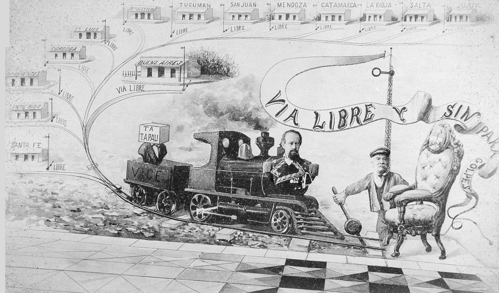 La ilustración es una caricatura de Julio A. Roca del año 1879 cuando iniciaba su carrera a la presidencia de la nación.