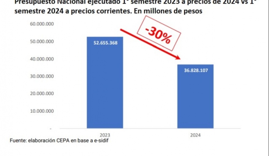 Según un informe del Centro de Economía Política Argentina (CEPA), donde se analiza la dinámica de la ejecución presupuestaria de la Administración Pública Nacional durante el primer semestre del 2024, entre las principales conclusiones destaca que se detectó una fuerte caída de la ejecución real respecto al mismo período del año 2023, del orden del -30%, lo cual implica un significativo ajuste del gasto público en áreas sensibles de la administración.