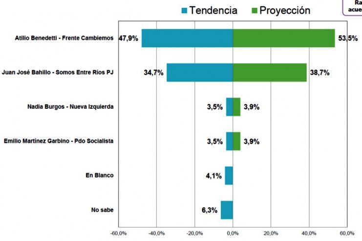 El trabajo, 10 días antes de la elección del domingo, predijo los 15 puntos que Cambiemos le terminó sacando al frente Somos Entre Ríos. El número era inimaginable para ambos espacios luego de las PASO. Ni siquiera en off de record los opositores, optimistas desde el primer momento, aventuraron esa diferencia. Lo cierto es que el trabajo de opinión pública lo dictaminó y el domingo se explicitó en las urnas. La elección fue 52 a 37 y la encuesta había repartido 53 y 38 por ciento para las fuerzas mayoritarias.