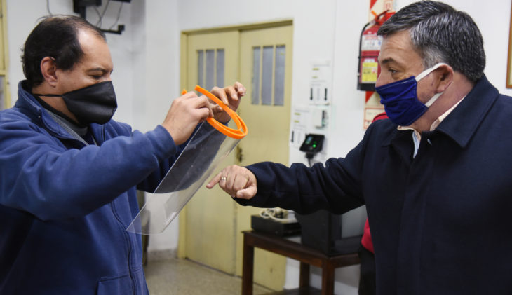 El Rector Luis Asín Junto, recibió este viernes, al intendente Martín Oliva y a la secretaria de Desarrollo Social, Marianela Marclay, donde directivos y profesores se encargan desde el inicio de la cuarentena a elaborar solidariamente insumos esenciales y de protección personal.