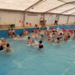Clase de Gimnasia, en Patio Escuela Normal hacia la década de 1940, perteneciente al fondo fotográfico / documental del Archivo General de la Nación.