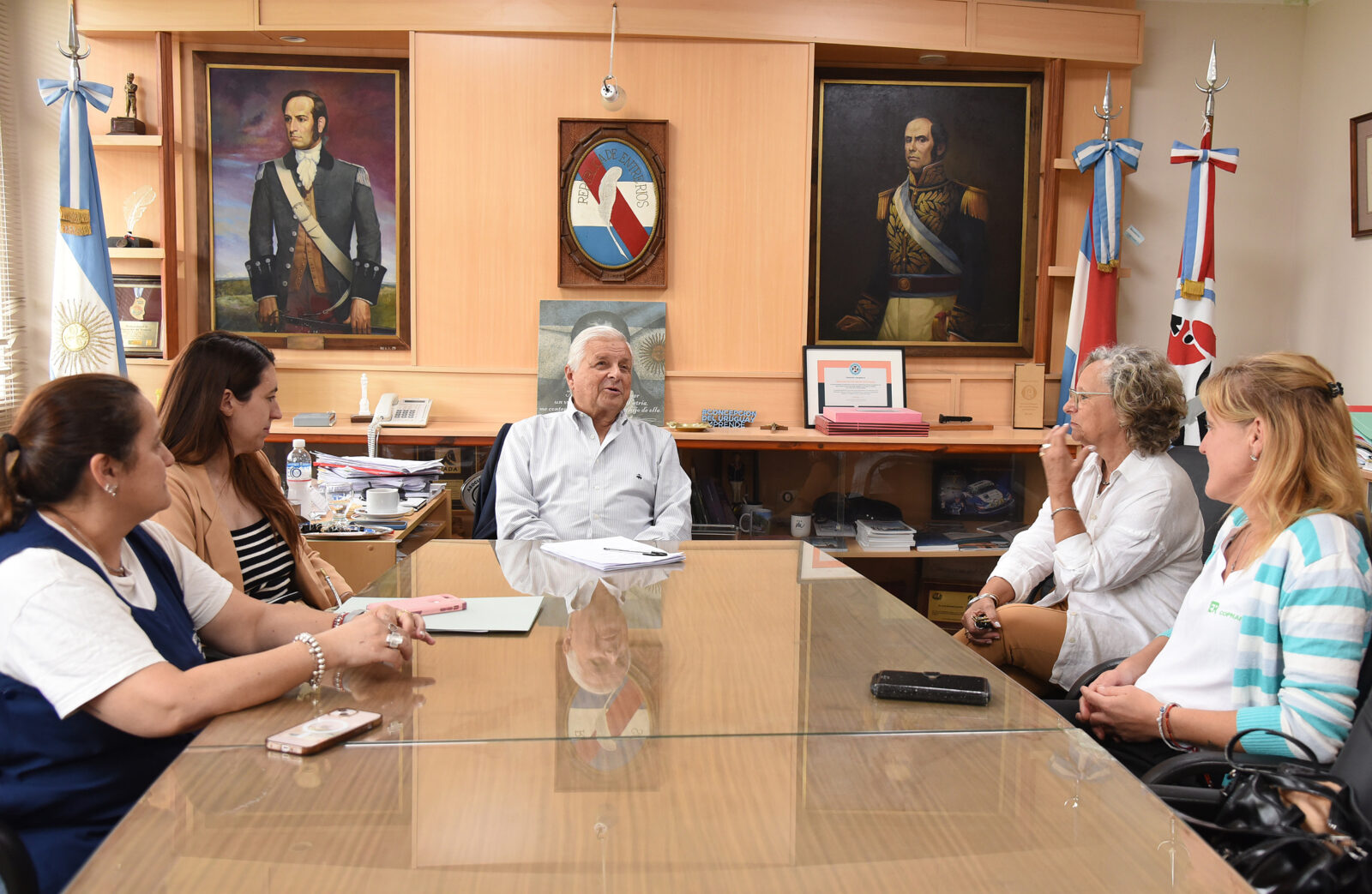 Días pasados, el intendente José Lauritto, junto a la Secretaria de Desarrollo Social, Marianela Marclay, recibió en el despacho municipal a las autoridades de la Escuela N°150 “Santa Clara de Asís”, en el marco de los festejos por el 45° aniversario de la institución. Del encuentro participaron Valeria Breda, coordinadora departamental del COPNAF Concepción del Uruguay; Claudia Dañhel, presidenta de la Asociación Santa Clara de Asís; y Liliana Barreto, directora de la escuela.