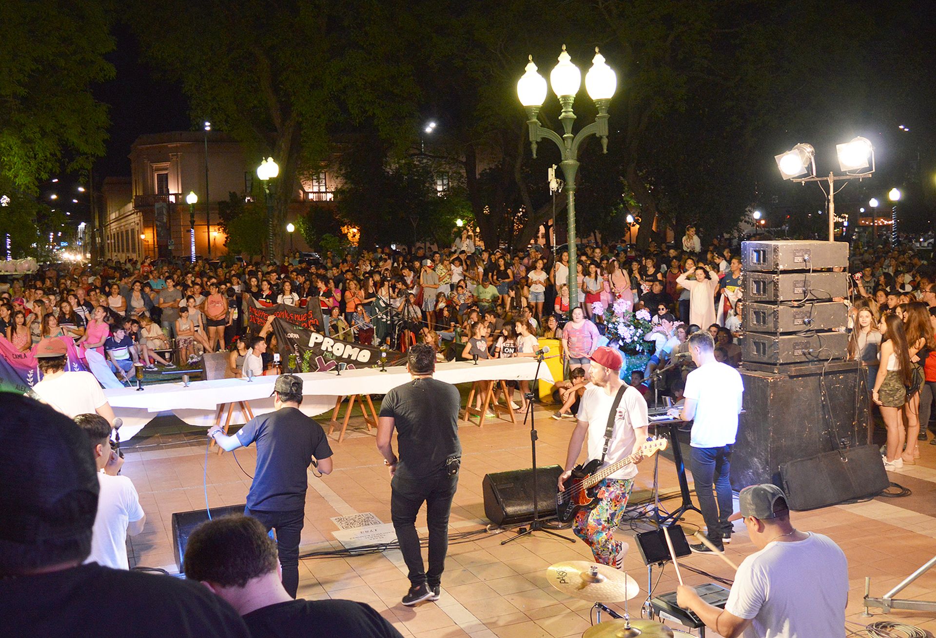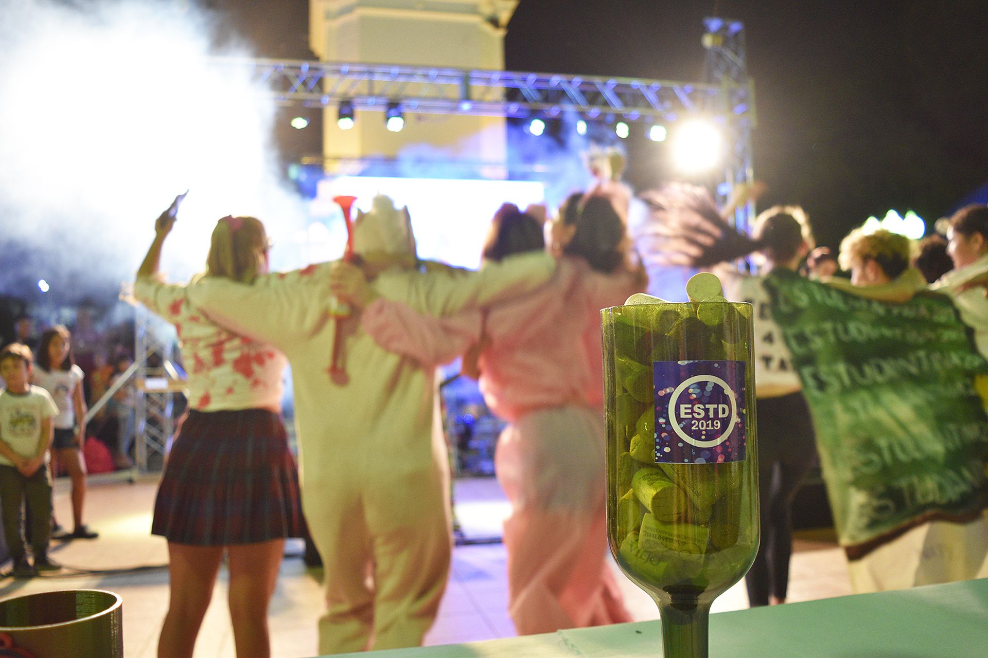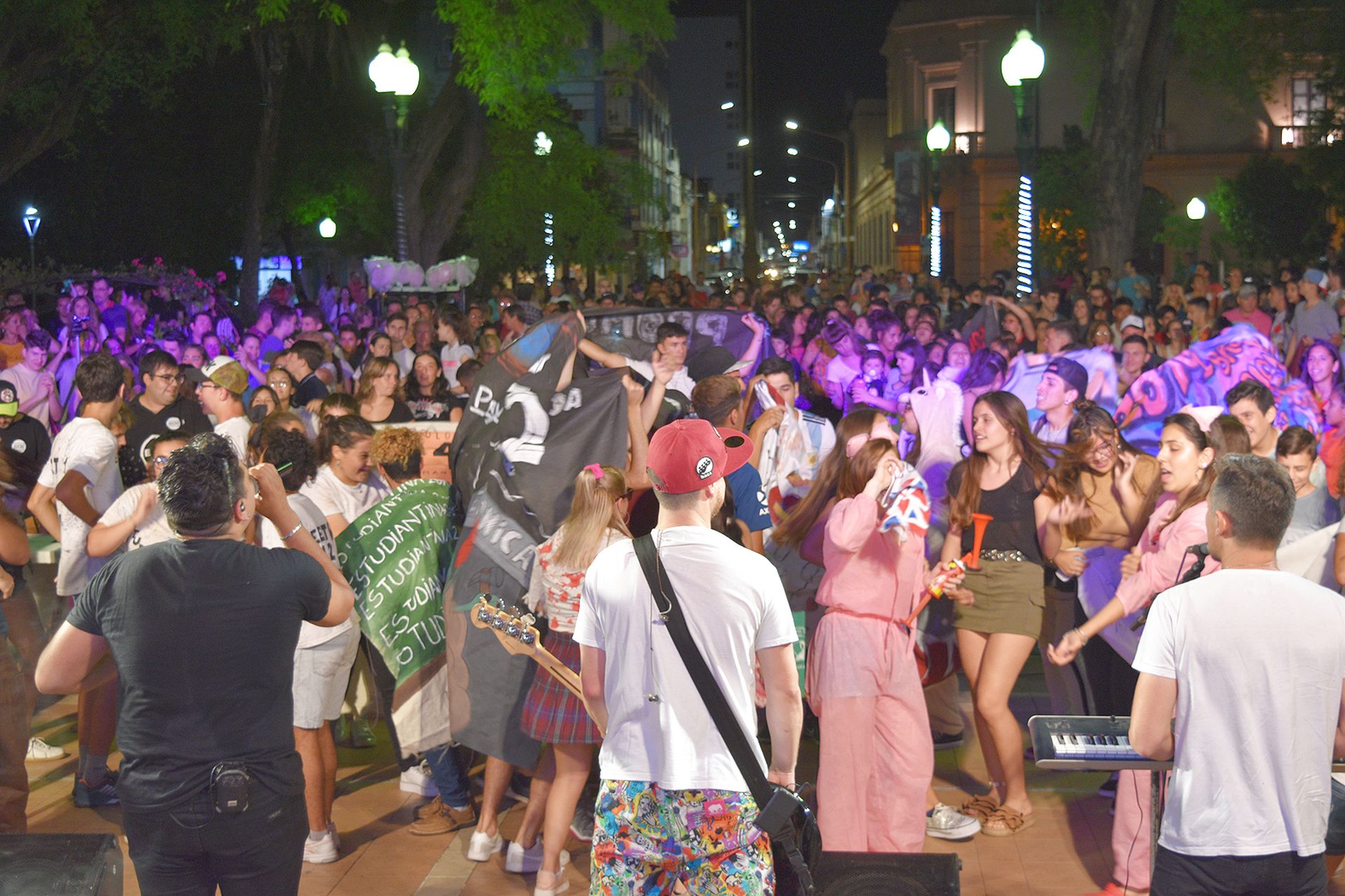 Se vivió una gran noche de festejo en plaza Ramírez donde los más de 100 cursos participantes de la Estudiantina se dieron cita para vivir la gran final, luego de más de un mes y medio de competencias. Previo al inicio de las definiciones, actuaron los grupos “Tu Locura” y Cazadores, que amenizaron la tarde/noche para luego dar paso a los lanzamientos de corchos.