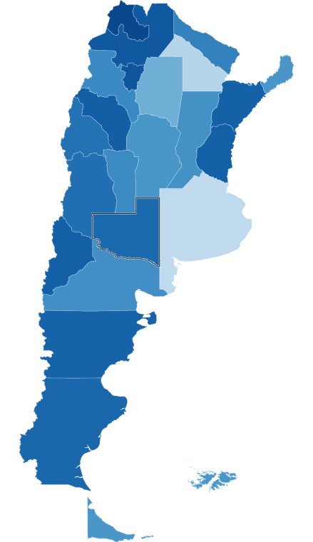 *San Luis: el gobernador Alberto Rodríguez Saá, señaló que “tras haber focalizado el aislamiento y con la apertura paulatina económica provincial» la provincia ostenta un alto nivel de «comercios, profesiones, empresas e industrias que se encuentran operativas». Según el CEP, San Luis trabaja al 77 por ciento de sus posibilidades, aunque las últimas reglamentaciones a nivel nacional habrían llevado ese guarismo hasta el 90 por ciento.