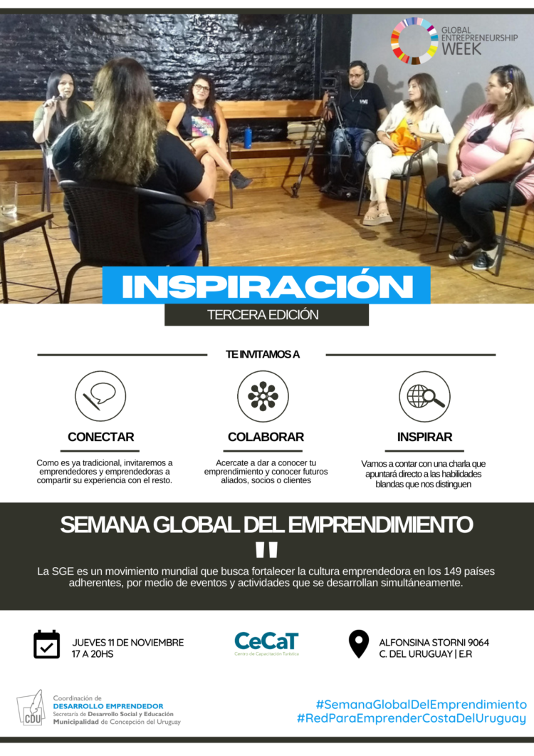 La Municipalidad de Concepción del Uruguay, a través de la Coordinación de Desarrollo Emprendedor dependiente de la Secretaría Desarrollo Social, se suma a la Semana Global del Emprendimiento, con jornadas de formación y sensibilización en la temática.
