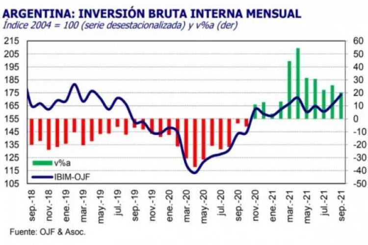 Con estos porcentajes acumula en los nueve meses transcurridos del 2021 un crecimiento de 26,2%. Según Ferreres a partir de este incremento se observa que, “la inversión está mostrando una marcada recuperación, tanto al comparar con 2020 como con los dos años anteriores, marcados por la recesión económica”.