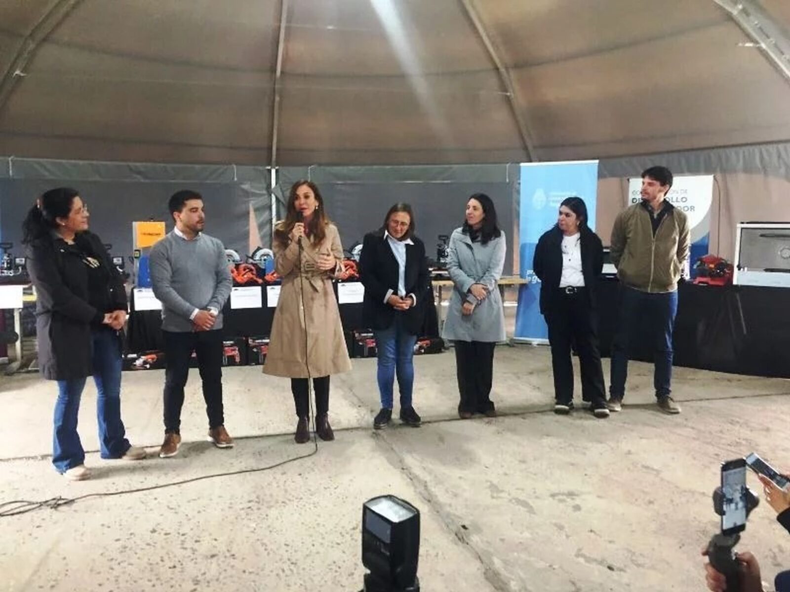 Tras participar de la ceremonia de inauguración de la nueva sede del Centro de Desarrollo de la Niñez Sirirí, Victoria Tolosa Paz otorgó herramientas pertenecientes al Banco de Herramientas, que financia su Ministerio, el de Desarrollo Social de la Nación.