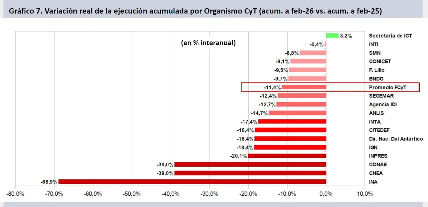 La Argentina fue en los últimos años uno de los países de América latina con mayor capacidad espacial propia, y el desfinanciamiento sostenido amenaza con desmantelar la inversión pública acumulada. Según el grupo EPC, el presupuesto de 2026 para la Conae es casi un 40% menor que el de 2025. En los últimos dos años, el organismo viene sufriendo una fuga de talentos hacia el sector privado o al exterior. Perdió alrededor del 15% de su personal.