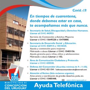 Durante la cuarentena se encuentran en funcionamiento los siguientes teléfonos: