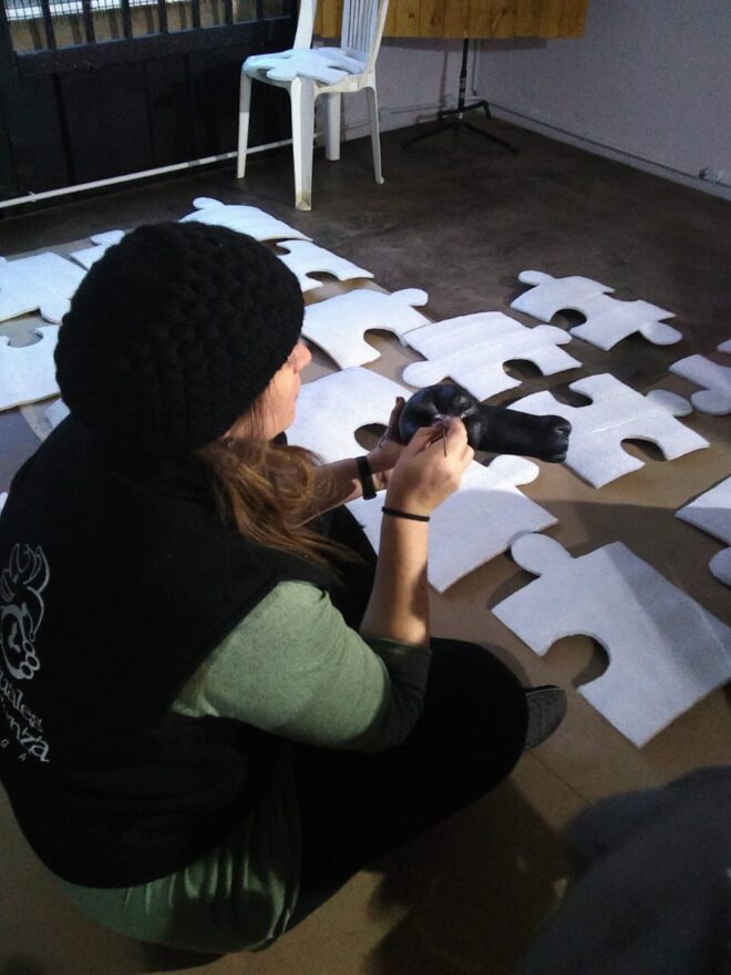 — La trama de “Vayamos por partes” transcurre en una fábrica de rompecabezas. Ahí los y las laburantes se encuentran en una rutinaria tarea de clasificación de piezas, fichas de rompecabezas. Y el hallazgo de una ficha “en blanco” desata la búsqueda de su significado. Así recorremos la coyuntura política, la grieta, la situación económica del país, los problemas de la sociedad, el extractivismo, los conflictos sociales y ambientales.