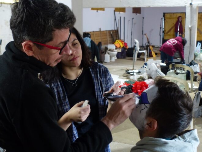 Hicieron un convenio con la Municipalidad uruguayense para instalarse en la abandonada ex Proveeduría de Banco Pelay, sede del nuevo Murgalpón. “Pero en septiembre, el agua se nos vino encima, literalmente, y nos llevó a tener que resolver nuevos espacios y tiempos, faltando realmente muy poco para la fecha del estreno”, rememora.