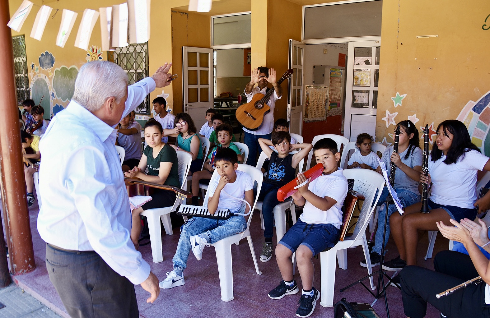 En ese marco, el director de la orquesta, Facundo Torresán, expresó su emoción y gratitud por el trabajo realizado: “Especialmente quería dar las gracias al equipo de docentes, que fue fenomenal y que hizo un trabajo bárbaro. Nosotros habíamos arrancado con el ensayo en julio, agosto, y llegamos a un resultado muy lindo hacia fin de año, esperando poder seguir creciendo con los chicos el año que viene. También quería agradecerle a la institución que nos abrió las puertas de maravillas, porque nos atendió muy bien, y a toda la gestión actual de la Intendencia de Concepción del Uruguay, que se acercó gentilmente a compartir la tarde con nosotros y gracias a cuya gestión este proyecto se estuvo llevando adelante”.