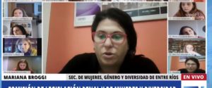Desde Paraná, la secretaria de Mujeres, Género y Diversidad, Mariana Broggi, expuso acerca de las políticas públicas que se llevan adelante en materia de género en Entre Ríos, en el encuentro que se desarrolló este miércoles de manera virtual en la Cámara de Diputadas de la Nación. Habló de la creación de la Secretaría de Mujeres en la actual gestión del gobernador Gustavo Bordet, el trabajo actual y las articulaciones que se llevan a cabo con los tres poderes del Estado y la sociedad civil, como así también con las Áreas Mujer y Diversidad municipales. También planteó los antecedentes que existen en la provincia, cómo fue la creación del Consejo de Prevención de las Violencias (Coprev) y su función como espacio de construcción y participación transversal.