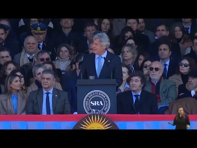 El presidente de la Sociedad Rural hizo un fuerte planteo al gobierno libertario por las retenciones. «Señor Presidente, usted sabe muy bien cuál es el problema fundamental del que estamos hablando», dijo Nicolás Pino.