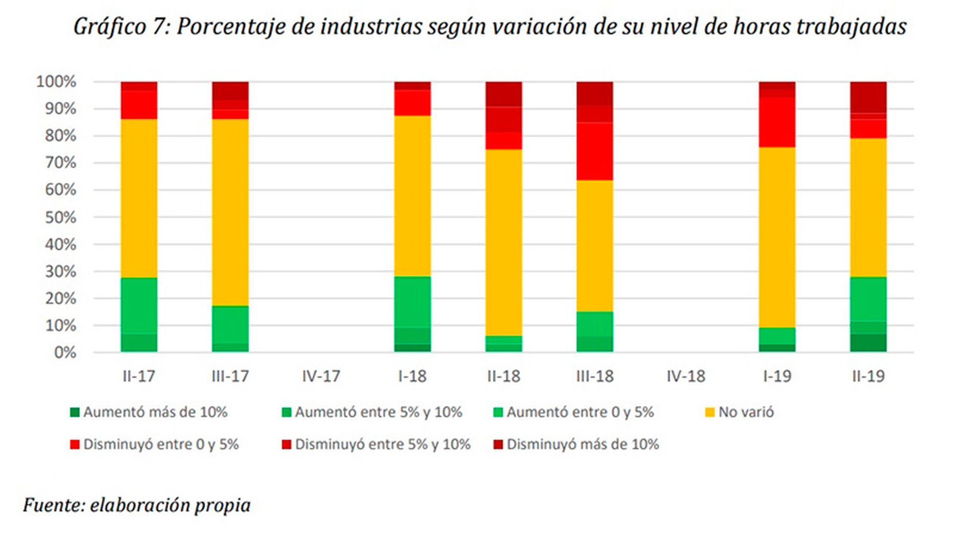 Por otro lado, el Informe de Coyuntura también registró un repunte la variable del empleo. El 28% de las industrias consultadas aumentó la cantidad de horas trabajadas respecto al trimestre anterior, mientras que el 16% subió los niveles de empleo, lo que significa un incremento respecto al primer trimestre. Aún así, el informe también da cuenta de que todavía se mantiene un núcleo de más del 20% de las industrias que refiere una disminución de las horas trabajadas y el empleo.