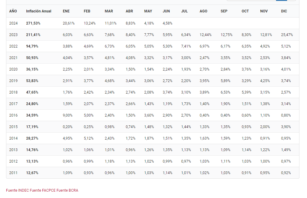Estimados lectores de La Ciudad, en virtud de que la inflación es una de las mas importantes preocupaciones que nos afectan a los argentinos, quisimos poner a su disposición los datos oficiales que publica el sitio https://estudiodelamo.com/ y cuya fuente es el INDEC, sin ningún tipo de comentario.
