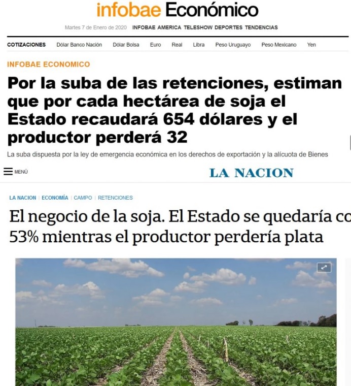 Para despedir el año viejo y recibir al gobierno nuevo, el diario La Nación sostuvo el 27 de diciembre que “el Estado se quedaría con más del 53% del ingreso que generará una hectárea de soja en 2020 mientras que el productor con un rinde promedio perdería plata”. En cambio, el investigador de la Universidad Nacional de Córdoba Facundo Oviedo calculó que un productor dueño de 200 hectáreas en la zona núcleo obtiene una renta de 479.000 pesos mensuales, una vez descontados sus costos, impuestos y retenciones.