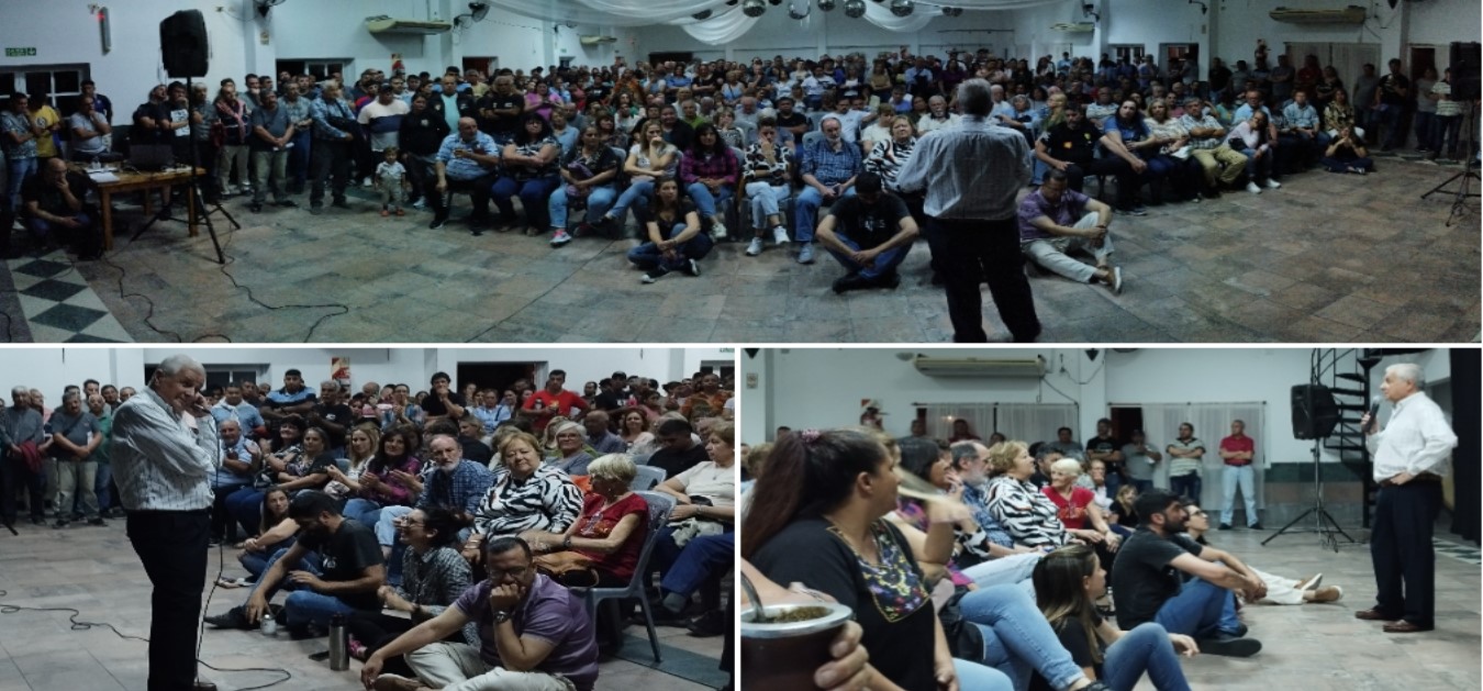 El encuentro con la militancia fue en el salón de Atpadis. Pasadas las 20.10 llegó Lauritto y comenzó. Primero agradeció a cada uno y una que “caminó” por su candidatura.