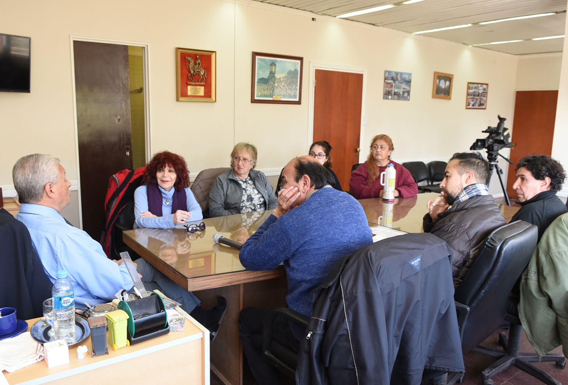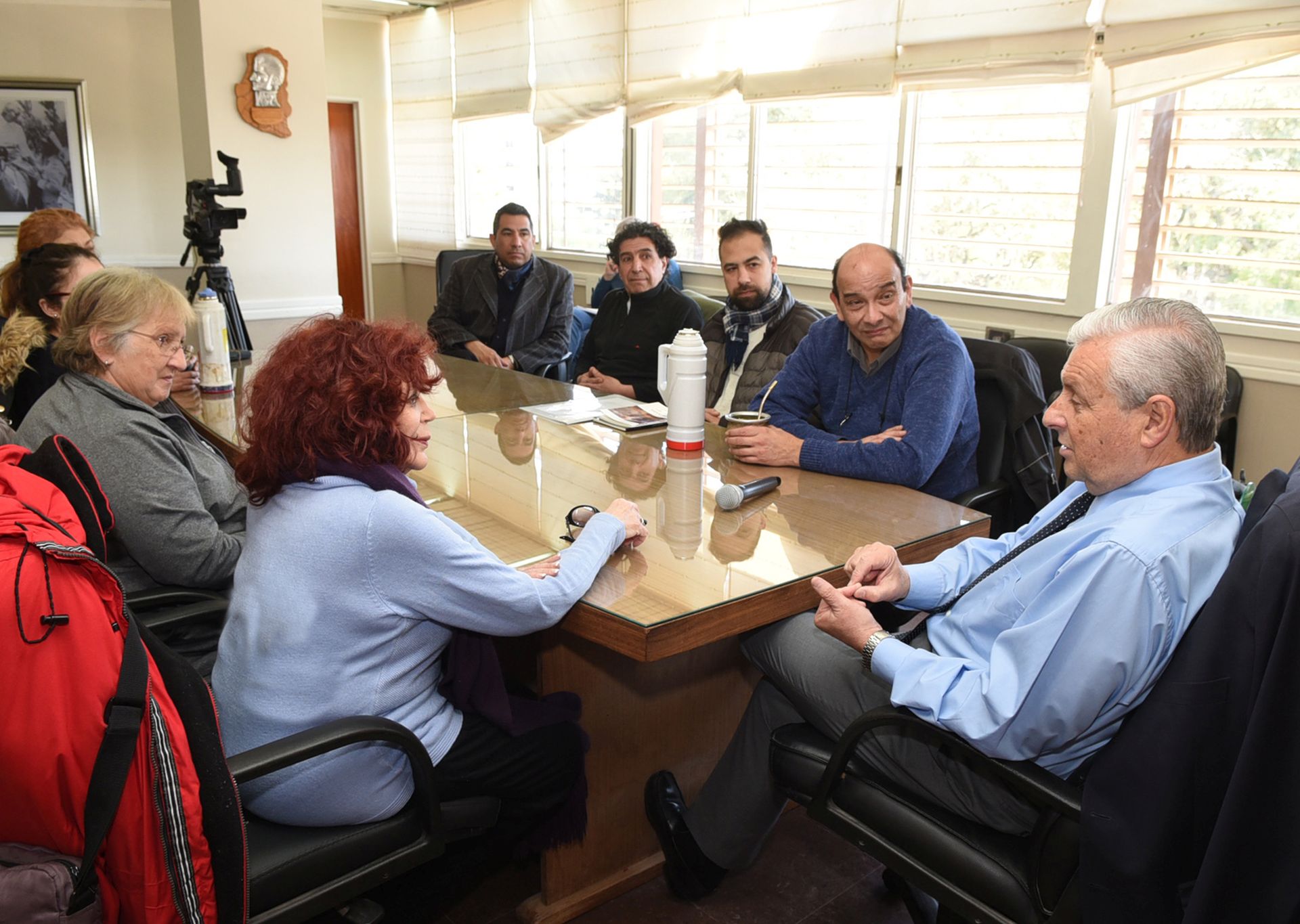 Durante la reunión con el Intendente, Strat estuvo acompañada por un grupo de actores uruguayenses. El casting, que se lleva a cabo en LT 11, concluye este viernes.