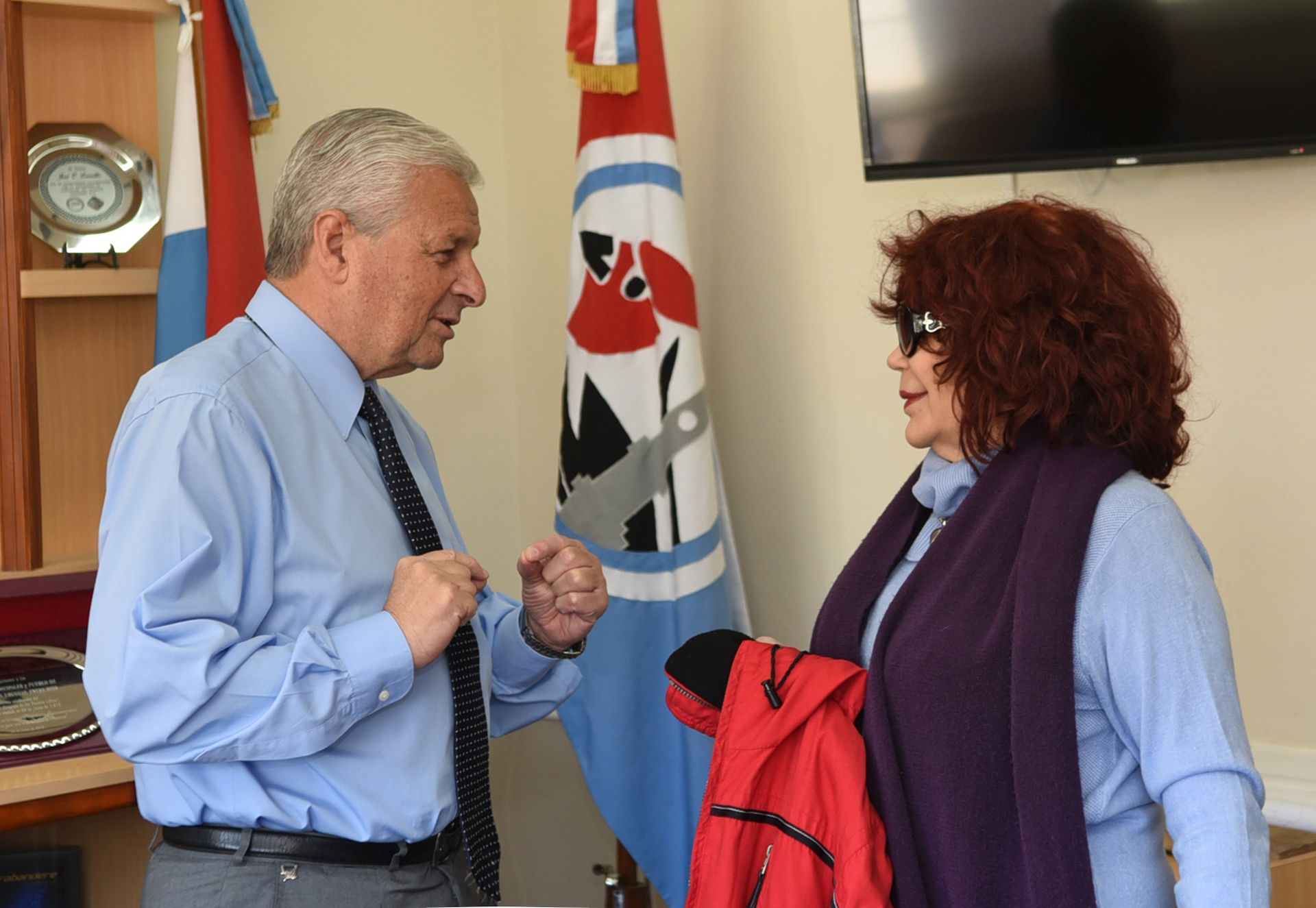 El presidente municipal José Eduardo Lauritto recibió este jueves a la actriz Miriam Strat, coordinadora de la audición “Las dos carátulas”, uno de los más antiguos de la radio-difusión argentina, que se emite Radio Nacional.