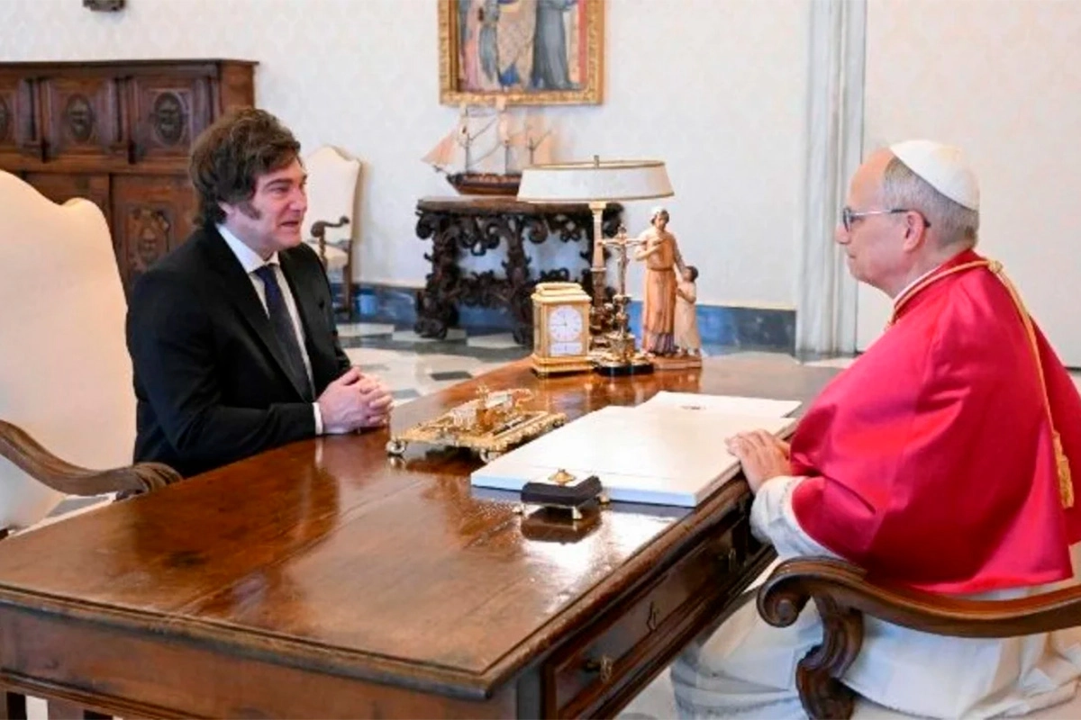 La reunión tuvo lugar en el Palacio Apostólico, donde Milei fue recibido formalmente por el sucesor de Francisco, fallecido en abril pasado. Se trató del primer contacto oficial entre el mandatario argentino y el nuevo pontífice, de origen estadounidense y nacionalidad también peruana, elegido en mayo como el primer papa no europeo desde la llegada de Jorge Bergoglio al trono de Pedro.