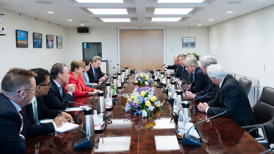 La titular del FMI, Kristalina Georgieva, recibió al ministro Luis Caputo en un hotel de Georgetown, Washington, donde se desarrolla la asamblea anual que el organismo realiza en conjunto con el Banco Mundial. La reunión no figuraba en la agenda oficial. Desde el Ministerio de Economía dijeron que el encuentro fue para «monitorear» el curso del acuerdo firmado hace poco más de una semana. Desde el FMI usaron la palabra «calibrar», que denota corrección.