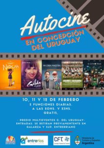 Si te gusta el cine, la Municipalidad te invita a disfrutar del Autocine en Concepción del Uruguay. A pesar del contexto de restricciones sanitarias, durante tres días seguidos podrás disfrutar de una programación de cine argentino de manera gratuita. ¿Cómo? Retirando los cupones en la Dirección de Turismo ubicada en Supremo Entrerriano y Galarza, de 7 a 13 y de 14 a 20 horas. De esta manera podrás disfrutar de cualquiera de las dos funciones diarias los días 10, 11 y 12 de febrero a las 20 y 23 horas en el Predio Multieventos.