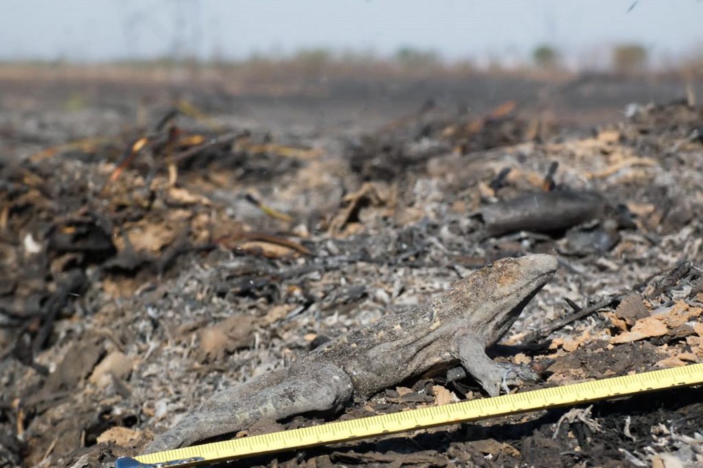 Vieron ejemplares de ranas y víboras caídas en el suelo totalmente quemado producto de los incendios sucesivos de los últimos meses. “El avance del fuego sobre diversos ecosistemas va destruyendo la biodiversidad y desplazando comunidades. Esto viene asociado a la expansión de la frontera agropecuaria, pudiendo identificar como actividades principales la siembra de granos y el desarrollo de la ganadería”, afirma la investigadora.