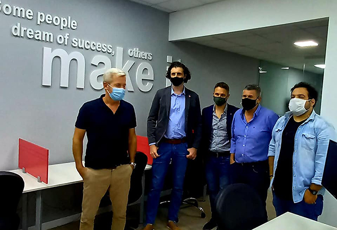 Por último «acompañado del presidente local del PRO Leandro Clapier y el diputado Provincial Jorge Satto se dirigieron a visitar a un joven ingeniero de 33 años, llamado Mirco Bombieri, un emprendedor que fundó una empresa tecnológica de innovación digital hace 11 años, y está ubicada en boulevard Los Constituyentes entre Galarza y 9 de Julio».