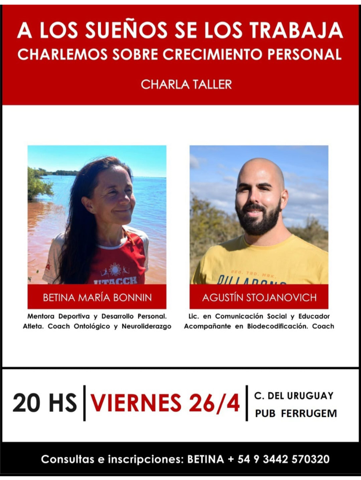Los cupos son limitados y se requiere inscripción previa. Por más información, contactarse a + 54 9 3442 570320 (Betina).