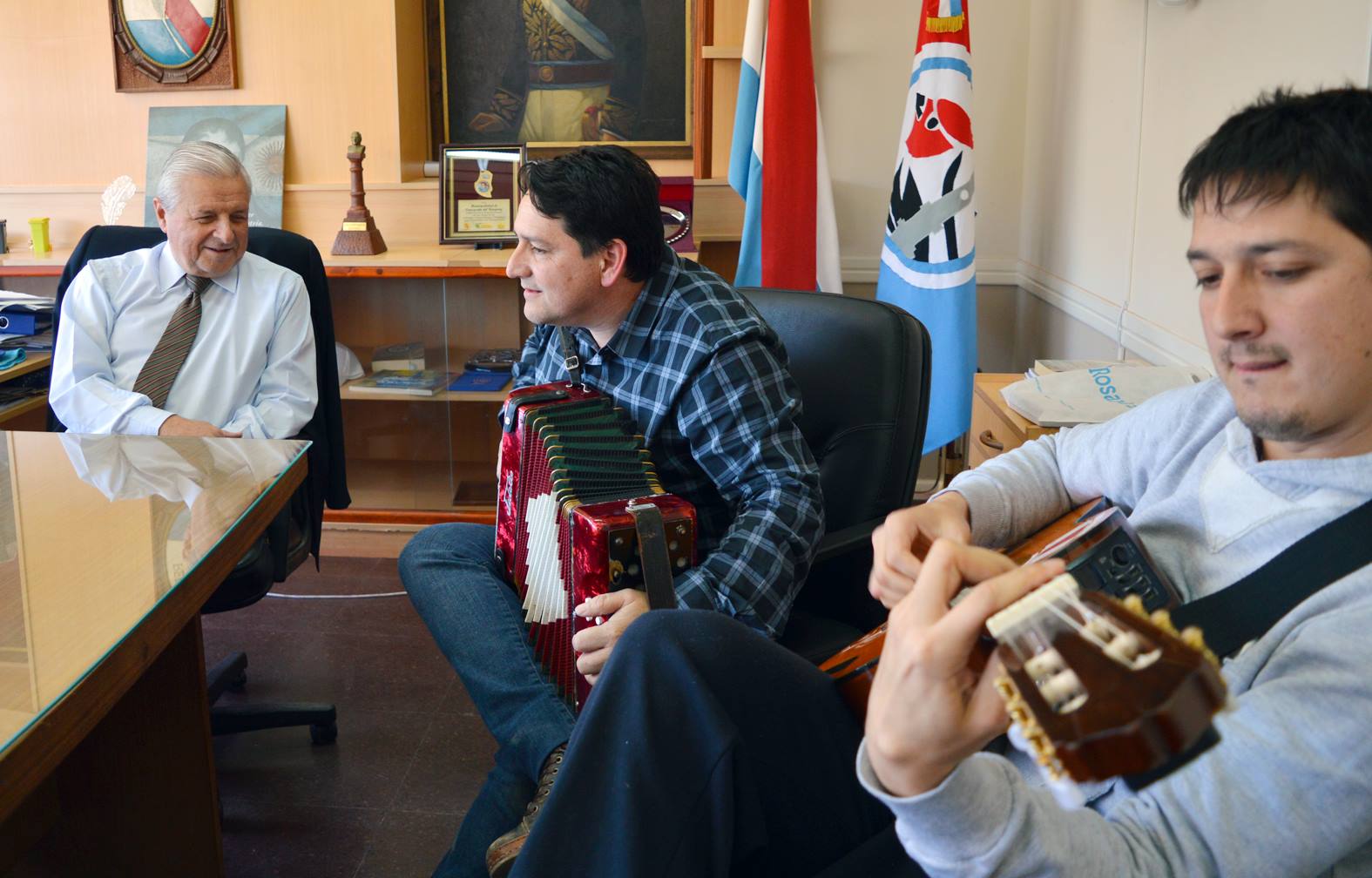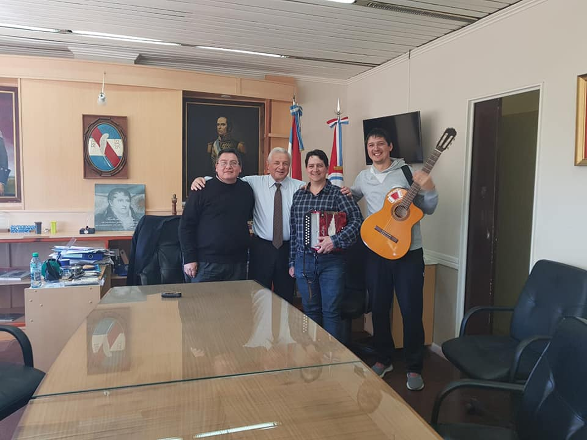 Acompañado por familiares y el director de Cultura Cristian Merlo, en el despacho de la Intendencia, detallaron la experiencia del certamen realizado en Europa y hasta se animaron a la interpretación de la particular música del acordeón que hoy es campeón mundial.