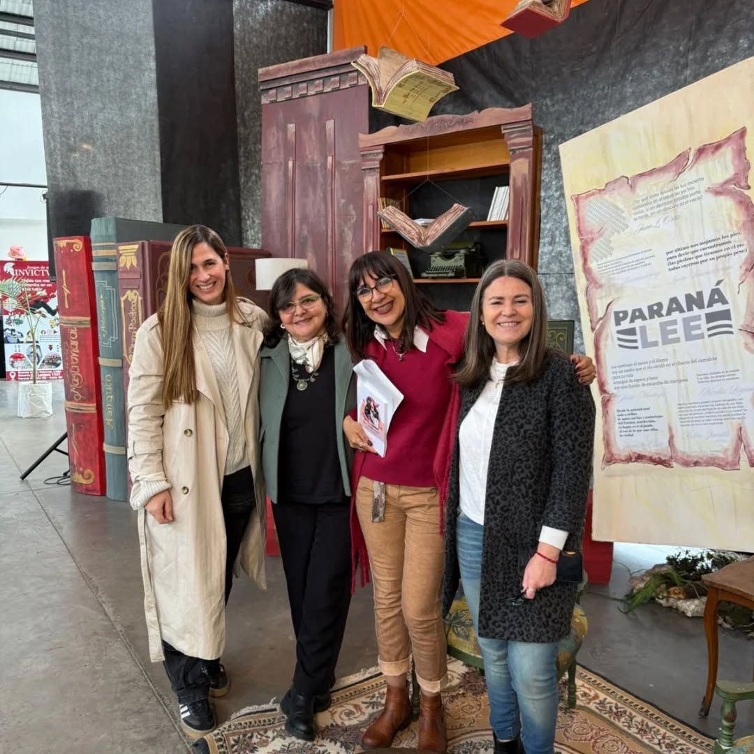 La sala de Mayo está junto al río y tiene un hall que este año tenía un decorado que remedaba una biblioteca antigua, gótica. En ese ambiente mágico “harripotesco” hubo presencia uruguayense, el viernes 15 en las lecturas que protagonizaron Luci Schwarzman, Hugo Luna y Vanesa Leopardo. El sábado a las 10,30 sonaron chamarritas de Los concepcioneros en la radio que trasmitía en vivo desde la feria. A las 11,30 se presentó en la sala Bien pudiera ser, antología publicada por la nobel editorial La Histórica de nuestra ciudad. Allí Ana Hernández, funcionaria de prensa municipal, presentó a Marga Presas y Ana María González, impulsoras del proyecto. Se comentó  la génesis de la antología  que es producto de una convocatoria realizada en momentos de pandemia bajo la consigna:  “ obras hablen del derecho de las mujeres a vivir sin violencia y el poder desarrollarnos con libertad, sobre todo no abandonar el derecho de escribir”, una invitación a ser, como dice Noel Martínez Pascal  “guerreras de la palabra”. Se recibieron y compilaron textos e imágenes que fueron compartidos a través de Revista la Ciudad, luego se compuso un PDF que fue difundido en redes. En el año 2022 había sido reconocido el proyecto por el HCD y recomendada su publicación impresa por el ejecutivo municipal de Concepción del Uruguay de entonces. El último pespunte, el remate de los hilos que se tejieron se dio este año, cuando por impulso de Ana Hernández y el auspicio del ejecutivo local, se editó la obra. Todo el caudal de voces viajó hasta Paraná cuando se leyó el Florilegio Bien pudiera ser (las mejores flores del jardín, fragmentos de los 19 textos incluídos en la antología), compuesto por las autoras invitadas. Al final se mencionó a las 25 integrantes de la antología, escritoras y pintoras. El público escuchó atentamente y acompañó con aplausos y calidez. La lectura se expandió en mensajes de dolor o esperanzas, palabras duras como cuchillos o soñadoras como alas, homenaje a mujeres fuertes, mensajes de  épica.