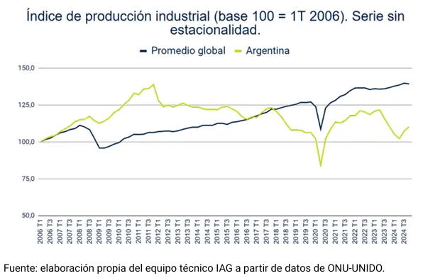 De esta manera, mientras la industria argentina fue en 2024 la que más cayó en todo el mundo, la ausencia de herramientas que modifiquen la estructura productiva en la actualidad pone en riesgo la supervivencia de actividades clave que enfrentan la desregulación de importaciones, la volatilidad cambiaria y falta de competitividad y la ausencia de políticas sectoriales. Todo esto pone en duda que cualquier intención de sostener un recorrido a la baja de la pobreza sea factible sin condiciones para impulsar la industria que, en estos meses, reportó una caída del 24% en la dotación de personal, esto es el nivel más alto de la serie.