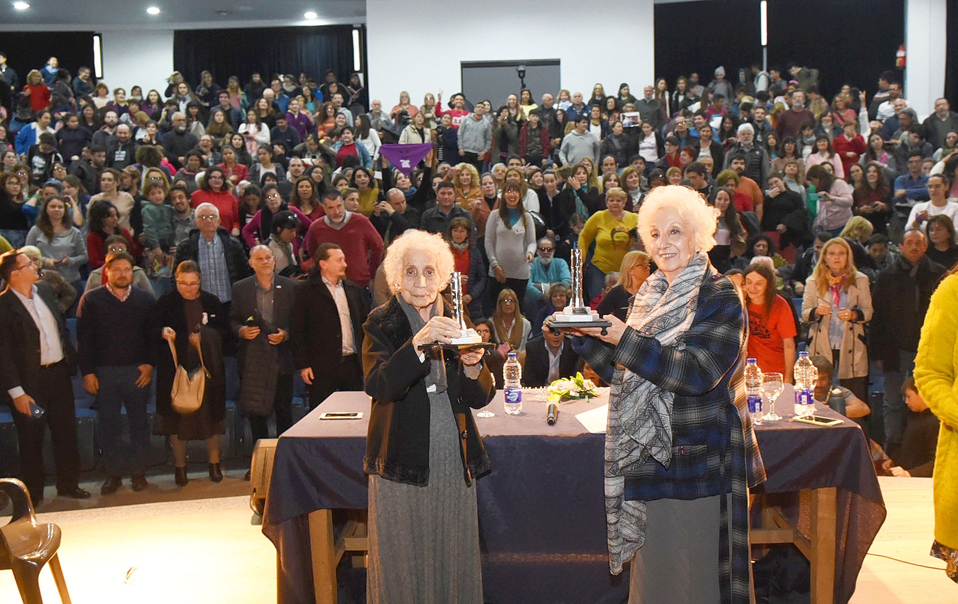 “Me voy reconfortada de tanto cariño. Me voy más joven, con muchas más ganas de seguir luchando en lo que me quede. Porque la historia tiene sus momentos… esta es una ciudad histórica y tuvo sus momentos gloriosos, y otros no tanto. A nosotros nos tocó la historia de buscar a nuestros nietos, a nuestros hijos, a nuestras familias, a nuestra gente, a los 30 mil, porque son 30 mil personas desaparecidas, aunque digan que no, son 30 mil, y 500 nietos aproximadamente, algo inconcebible… el robo de bebés tras el nacimiento, y matar a la mamá después. Es algo que no debe volver a pasar y por eso estamos nosotros acá”.