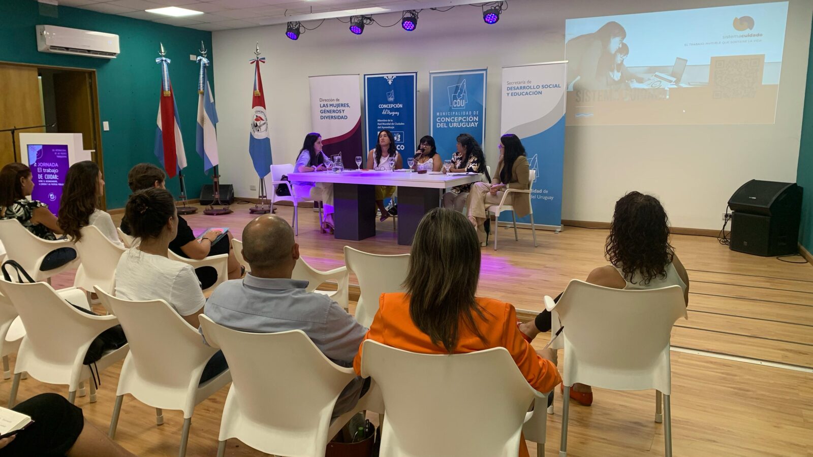El primer panel estuvo compuesto por Clara Chauvín, Andrea Sosa Alfonzo, Florencia Rojo y Alejandra Núñez, en el cual presentaron un adelanto del documental Sistema Cuidado (Canal UNER/Revista Riberas), cuyo objetivo es visibilizar la organización social de los cuidados.