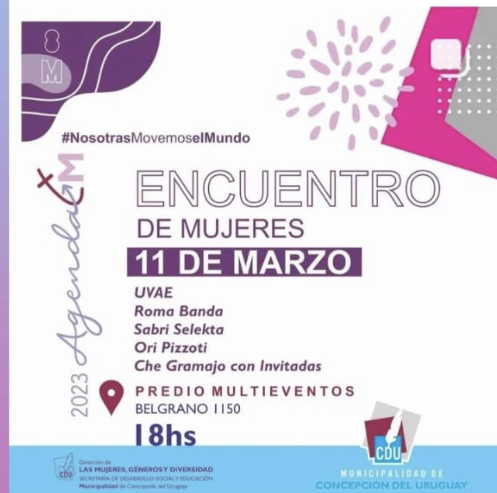 El sábado 11 de marzo, se realizará un encuentro de mujeres que prevé presentaciones artísticas: Música, fotografía, pintura, artesanía, emprendedurismo, gastronomía, establecimientos educativos, organizaciones civiles y diversas agrupaciones, serán algunos de los tantos atractivos que se espera apreciar durante la jornada que comenzará a las 18.00 con entrada libre y gratuita.