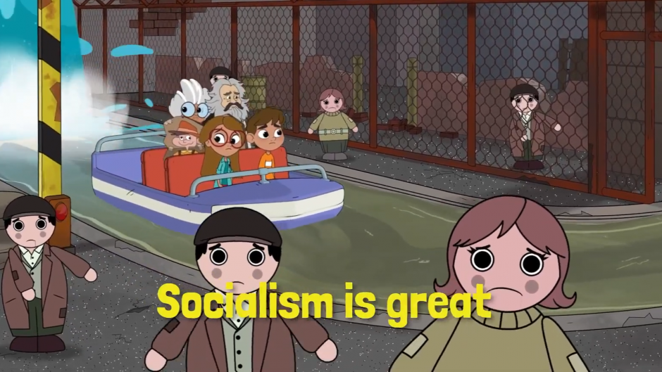 La historia narra las aventuras de los gemelos Ethan y Emily Tuttle, donde ridiculizan a pensadores como Karl Marx y se reivindican las ideas liberales del Siglo XVIII. «Pasamos de Zamba con San Martín a Zamba con Julio Argentino Roca y los nenitos que hablan con John Locke», comentó uno de los trabajadores que aceptó el retiro voluntario.