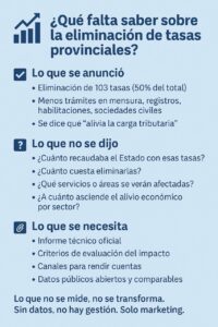 En tiempos donde se exige austeridad, transparencia y eficiencia, no alcanza con decir: hay que demostrar. Eliminar tasas puede ser una buena noticia. Pero comunicar sin datos solo alimenta una lógica peligrosa: la del marketing en lugar de la política pública.