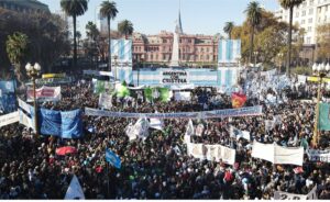 Desde Plaza de Mayo, miles de personas escuchaban atentamente el discurso de la exmandataria, quien aprovechó para apuntar contra el ministro de Economía, Luis Caputo, el cual dijo que «alquila dólares» para simular que hay reservas en el Banco Central. «¿Alguien puede pensar que esto es sostenible? Más chanta imposible», sentenció.
