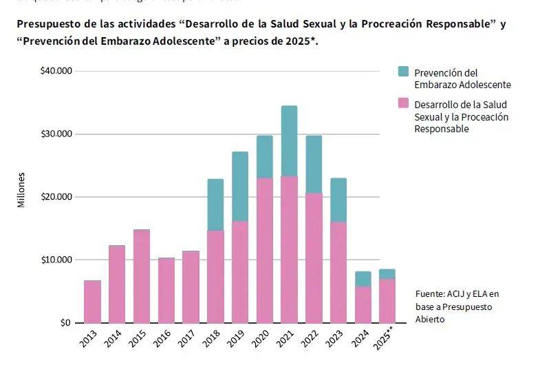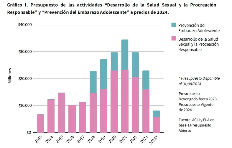 El informe que elaboraron el Equipo Latinoamericano de Justicia y Género (ELA), Red de Acceso al Aborto Seguro Argentina, el Centro de Estudios de Estado y Sociedad y la Asociación Civil por la Igualdad y la Justicia indica que en lo que va del año hubo recortes del 68% en productos farmaceúticos y medicinales en el marco del ENIA, una cifra que sitúa «el presupuesto para insumos farmacéuticos en su nivel más bajo desde 2013». Las organizaciones enfatizaron que su discontinuidad pone en peligro la salud y los derechos de niñas, niños y adolescentes e implica un retroceso en la lucha contra la pobreza intergeneracional.