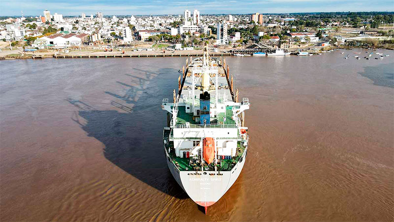 Este es el primero de tres buques programados para este mes de julio que realizarán cargas con destino de exportación desde los puertos de Concepción del Uruguay e Ibicuy.