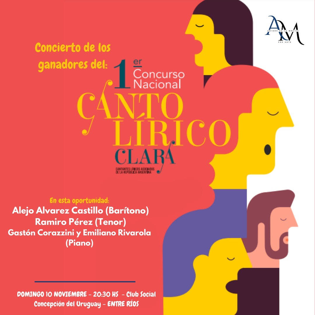 La Asociación Pro Arte Amigos de la Música finaliza su Temporada 2024 con un Concierto de Canto Lírico a cargo de Ramiro Pérez y Alejo Alvarez Castillo, tenor y barítono respectivamente; acompañados al piano por Gastón Corazzini y Emiliano Rivarola. El mismo tendrá lugar el próximo domingo 10 de noviembre a las 20:30 Hs. en el Club Social (San Martín 735) de nuestra ciudad.