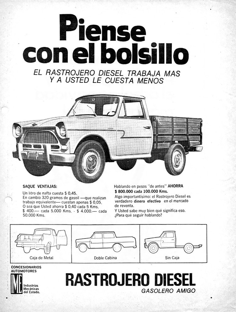 De hecho, la primera etapa del modelo mantuvo la motorización Willys, hasta que en 1969, con la segunda generación, se cambió por impulsores Indenor. Hasta que el 22 de mayo de 1979, por decisión del dictador Jorge Rafael Videla, se suspendió la producción del Rastrojero. Y un año más tarde, el mismo gobierno militar liquidó IME.