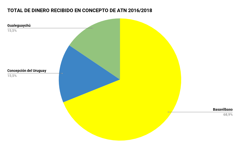 El dato más llamativo de todos es la injustificada asistencia para gastos corrientes que recibió el municipio de Basavilbaso, gobernado por Gustavo Hein (PRO). Hasta junio de 2018 la localidad del Departamento Uruguay recibió $13.300.000 de pesos en concepto de ATN, una cifra exorbitante si tenemos en cuenta que la ciudad no llega a tener 10.000 habitantes.