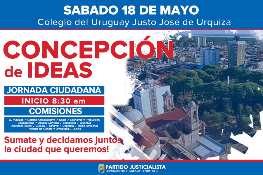 El evento se llama “Concepción de ideas” y se realizará este sábado desde las 8.30 en las aulas del Colegio del Uruguay. El PJ, en este sentido, abrió la invitación hacia toda la comunidad uruguayense para que se acerque a aportar su mirada sobre algunas de las 14 temáticas que se abordarán, tales como Medio Ambiente, Salud, Género y Obras Públicas, entre otras.