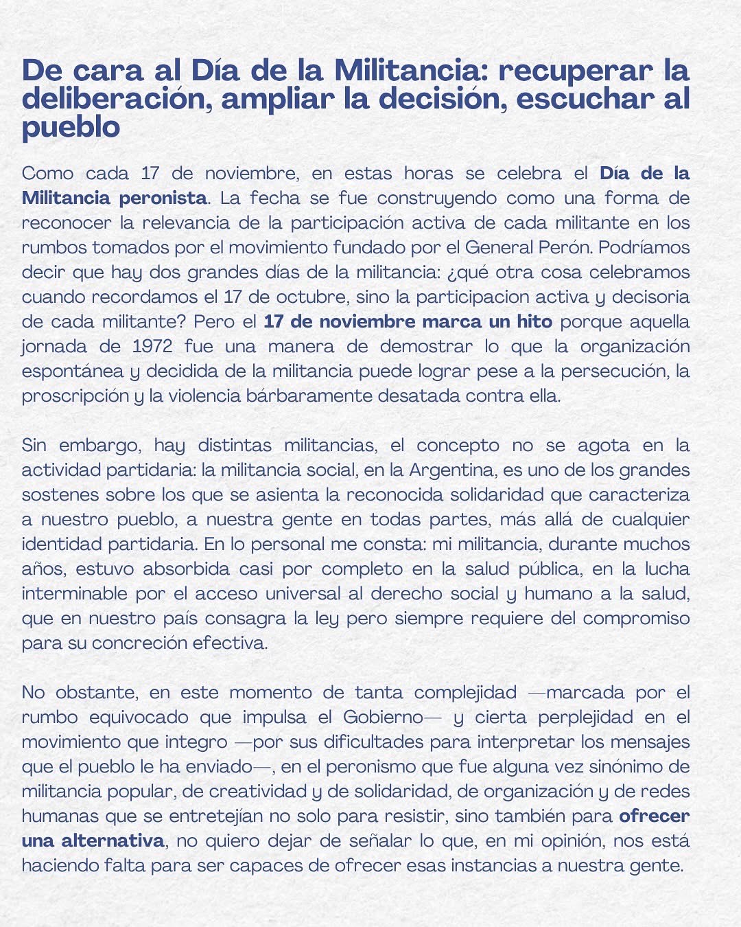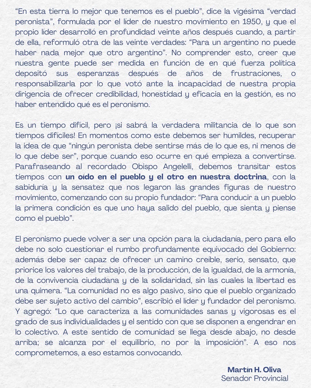 El ex intendente de Concepción del Uruguay y actual Senador provincial por el departamento Uruguay y jefe del bloque de Senadores de la Legislatura, Dr. Martín Oliva; acaba de publicar en las redes sociales esta Nota que ponemos a disposición de los lectores de La Ciudad: