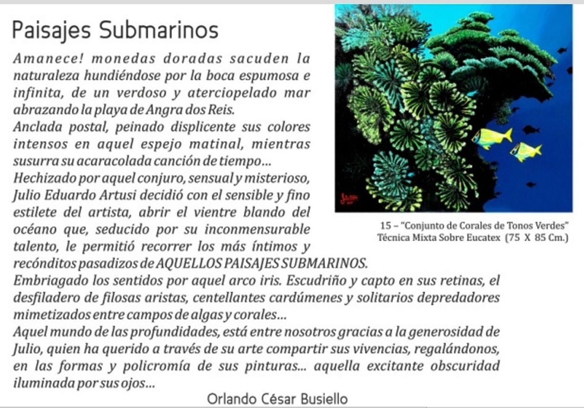 El evento tiene como eje temático el título “Paisajes Submarinos”, lo que aportan la originalidad y características de las obras de arte a presentar.